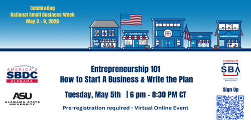 The event is open to the public. No fee to attend. This event is hosted by Alabama SBDC at Alabama State University.