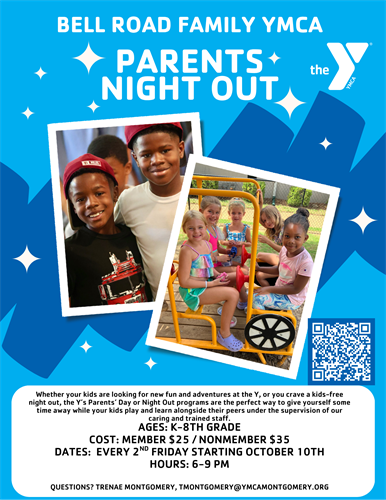 Name: Bell Road Family YMCA Parents Night OutDate: October 14, 2033Time: 6:00 PM - 9:00 PM CDT