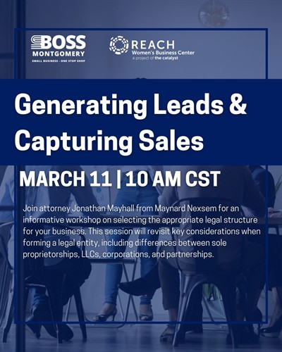 Name: Capturing Leads & Sales ConversionDate: March 11, 2026Time: 10:00 AM - 11:00 AM CDTWebsite: http://www.sbossmgm.com