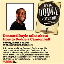 Event Description:Join us for a talk by Dennard Dayle about his new novel, How to Dodge a Cannonball. A razor-sharp satire that dives into the heart of the Civil War, it questions the essence of the fight, not just for territory, but for the soul of America. The book is savagely funny and scarily smart — a critics’ pick. Full of absurdity and humanity in equal measure. Enjoy our talk by Dennard Dayle at The NewSouth Bookstore on Sunday, March 1, 2026 at 3:00 p.m.Location:The NewSouth Bookstore