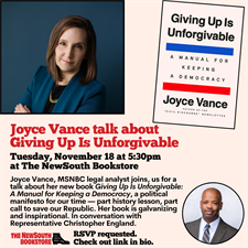 We’ll be offsite for our big upcoming program with Joyce Vance, now co-hosted by the SPLC and relocated to the Civil Rights Memorial Center. We’re excited to bring Vance to Montgomery for a talk about her new book, Giving Up Is Unforgivable: A Manual for Keeping a Democracy, to be moderated by Alabama Representative Chris England. Vance is a legal professor at the University of Alabama and MSNBC legal analyst. Her book is a political manifesto for our time — part history lesson, part call to save our Republic. Her talk on Tuesday, February 24, 2026 at 5:30 p.m. will be inspirational. Don’t miss it!