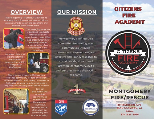 Name: Montgomery Fire/Rescue's Citizens AcademyDate: March 2, 2026Time: 6:00 PM - 9:00 PM CSTWebsite: CLICK HERE TO REGISTER
