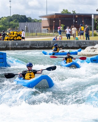 Then, build your team of six and take on the All-Forward Raft Race, going head-to-head down our Olympic-standard competition channel. Businesses, clubs, and organizations will battle it out in bracket-style heats, all chasing the title and bragging rights that come with it. No experience with whitewater needed.