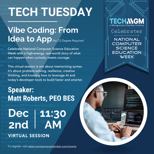 Join TechMGM for Vibe Coding, featuring Matt Roberts from PEO BES, as he breaks down how he took an idea, limited coding experience, and a lot of determination—and turned it into a fully deployed web application. No formal computer science background. No textbook step-by-step. Just critical thinking, trial-and-error, and smart use of modern tools. Matt will share the journey of building and launching his application using accessible, powerful platforms including GitHub, Google AI Studio, and Vercel—showing how anyone with an idea can learn how to get from concept to live product.